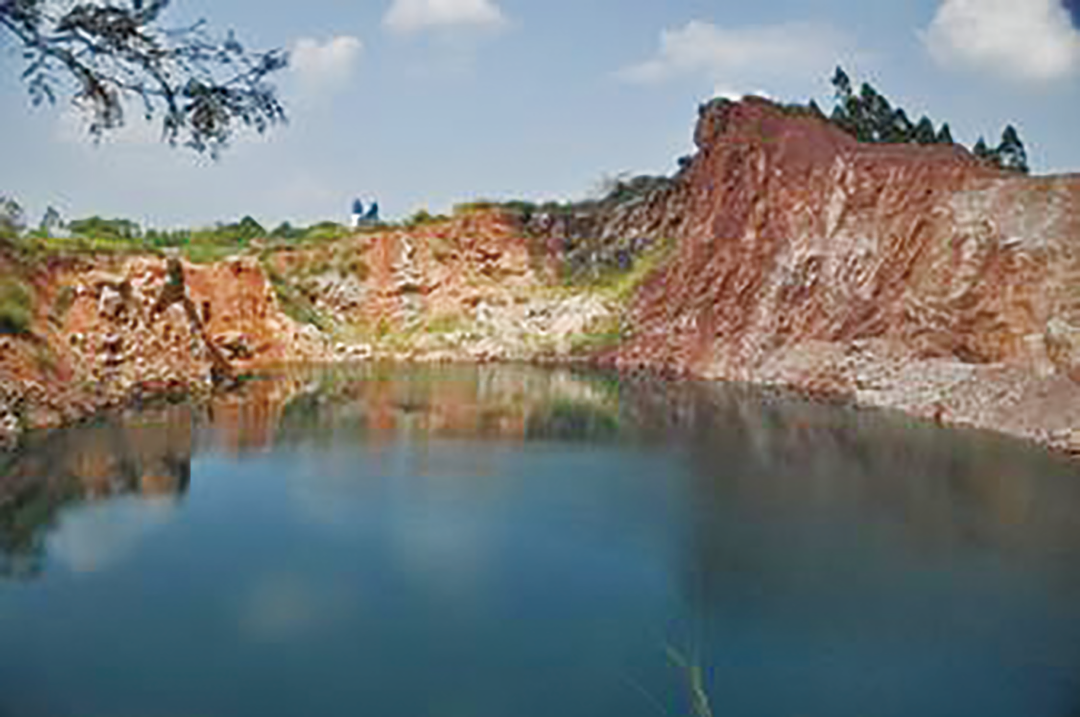 1.地形地貌破坏严重。矿坑开采前,地形以小型山丘为主,地类以林地为主,地势较为平坦,矿体露出于地表。矿山采用露天开采方式,导致地形地貌、植被破坏,山体破损、表土裸露、岩石风化,与周边自然环境极不协调。