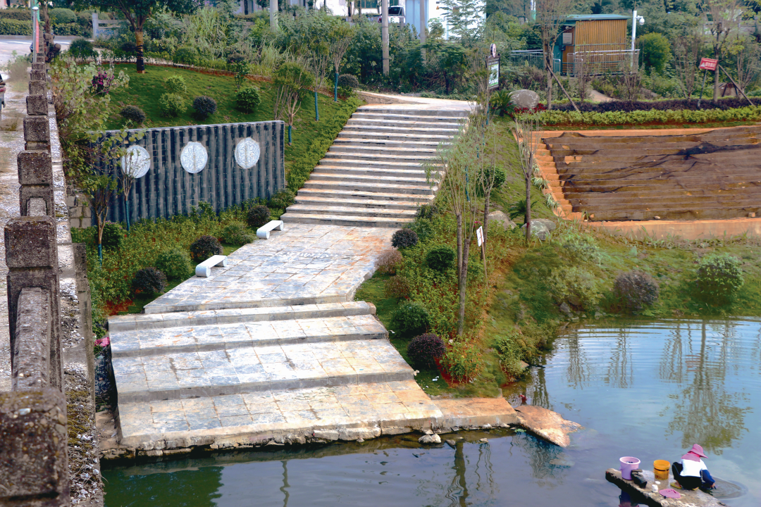 2.以近自然理念,实施河道修复。一是采用环保疏浚工艺,疏通河道“毛细血管”,清除污染淤泥。项目实施河道清淤疏浚面积13142平方米,恢复河床自然状态。二是实施物理清障。拆除拦河障碍物5处,清理河道的桥和坝前淤积的树枝、垃圾,畅通水系。三是生态护坡。在保留原有河道自然弯曲形态的同时,摈弃以往生硬的水泥护岸护坡方式,改用松木桩护脚、叠石护脚+植物措施护坡、宾格网笼护坡,整个项目仅用了2.5吨水泥,共修复受损岸线21处,修复生态码头20座,在岸坡布设5000米生态步道,为市民提供休闲空间。四是尽量减少施工对原生生态的影响。通过自制船舶搭建浮台配合挖掘机施工,实现水上打桩,避免施工机械设备碾压农田、破坏植被,造成土壤板结,最大程度保护原生土壤和植被的完整性,减少生态系统扰动。同时,改良竹排从水路运输主要修复材料,避免施工材料运输对河堤及沿岸植被的二次破坏。
