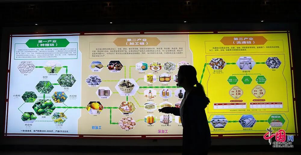 浦北陈皮产业园中展示的浦北陈皮一二三产业融合发展示意图。中国网 赵娜摄影