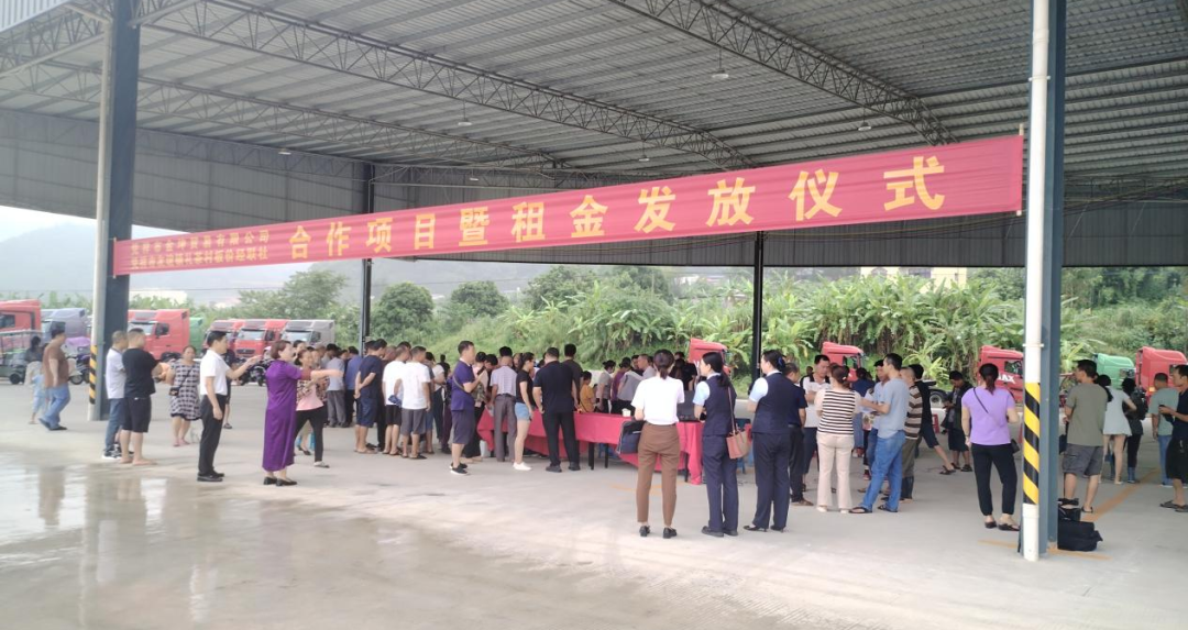 7月30日,凭祥金坤贸易有限公司与凭祥市友谊镇礼茶村板价经联社合作项目暨租金发放仪式在凭祥物流产业园举行。图为发放现场。黄炫武 摄