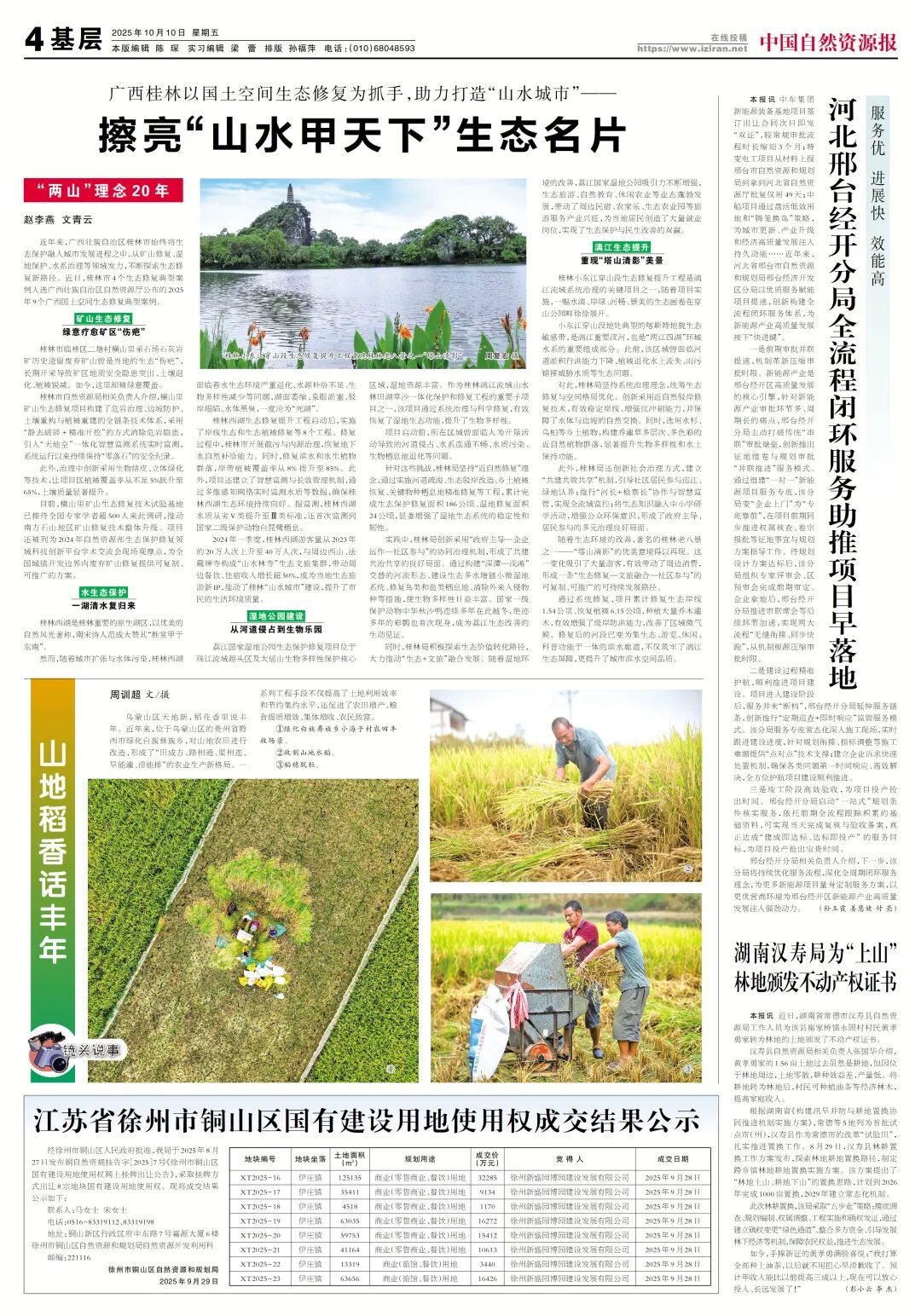近年来,广西壮族自治区桂林市始终将生态保护融入城市发展进程之中,从矿山修复、湿地保护、水系治理等领域发力,不断探索生态修复新路径。近日,桂林市4个生态修复典型案例入选广西壮族自治区自然资源厅公布的2025年9个广西国土空间生态修复典型案例。