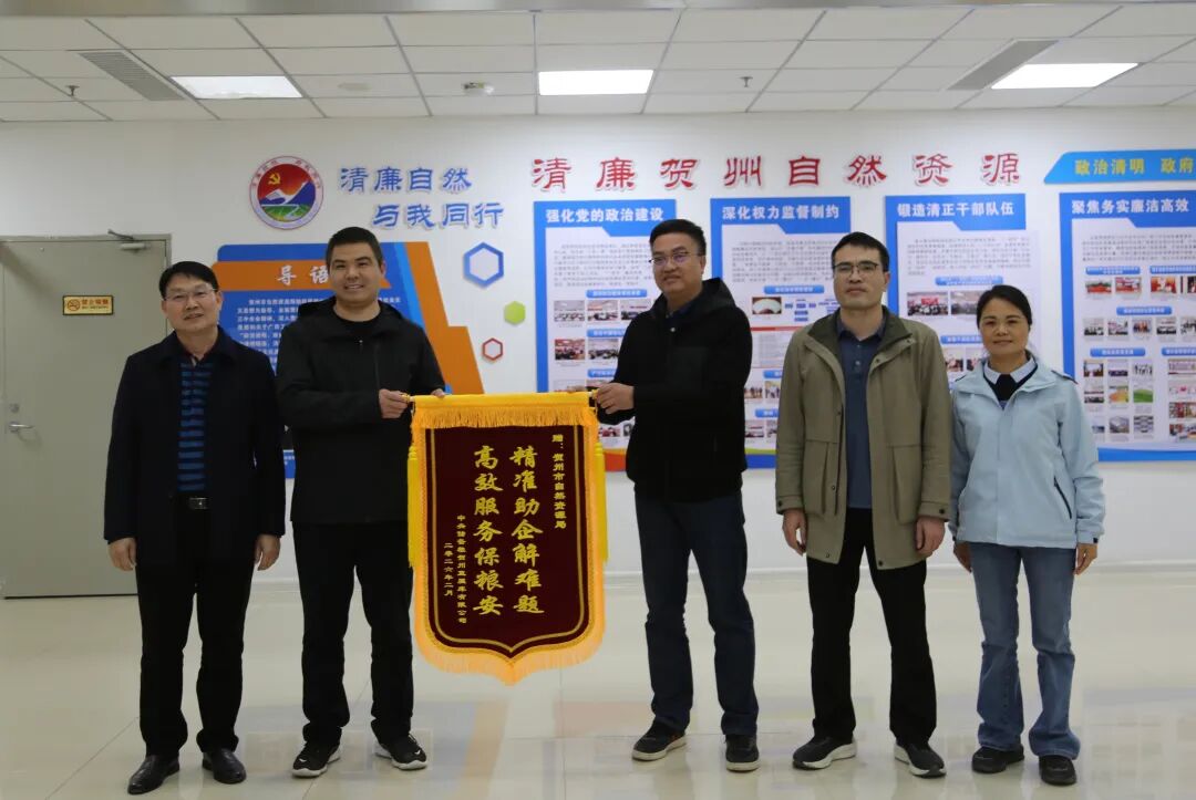 2月24日,春节后复工第一天,贺州市自然资源局迎来新春“开门红”——中央储备粮贺州直属库有限公司相关负责人一行专程到访,将印有“精准助企解难题 高效服务保粮安”的锦旗和感谢信送至市自然资源局,衷心感谢自然资源部门在解决公司仓储设施历史遗留问题、助力不动产权证办理中给予的精准指导和帮助。
