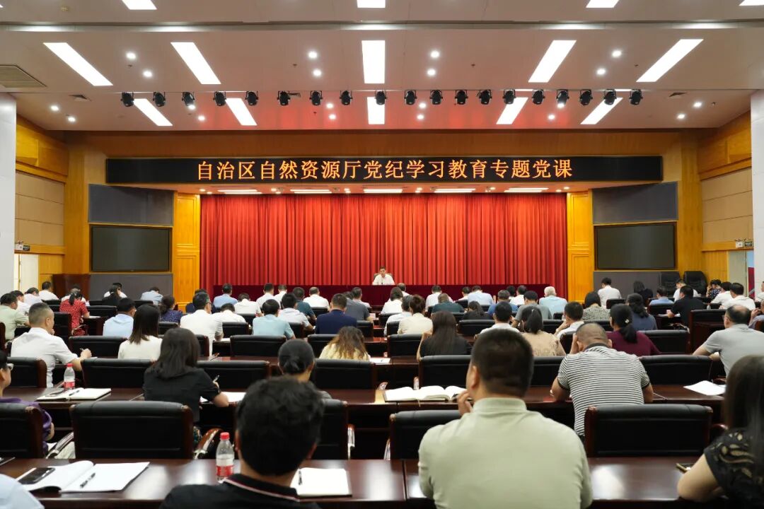 6月24日,自治区自然资源厅举办党纪学习教育专题党课,厅党组书记、厅长张文军以《学纪知纪明纪守纪 以坚强纪律保障推动自然资源事业高质量发展》为题,为全厅党员干部上专题党课。