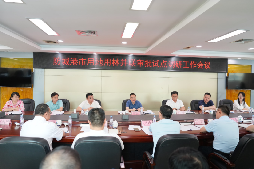 近日,自治区自然资源厅党组成员、副厅长玉彤率队赴防城港市开展用地用林并联审批试点调研工作,防城港市人民政府副市长罗真出席座谈会。