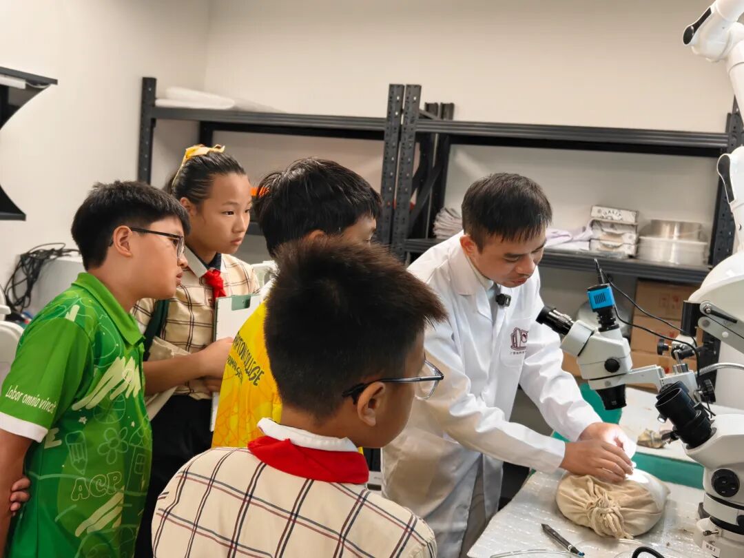 为丰富研学内容,广西自然资源博物馆特别设置探秘古生物化石“诊疗室”环节,将广西首家专业古生物化石修复鉴定室首次向中小学生开放。修复师手持专业气动笔现场演示,随着笔尖移动,三叶虫化石的轮廓逐渐清晰;另一侧,喷砂系统正细致清理化石缝隙。学生们凝神观察,唯恐错过任何细节,更禁不住为“远古生命的重生”而惊叹。