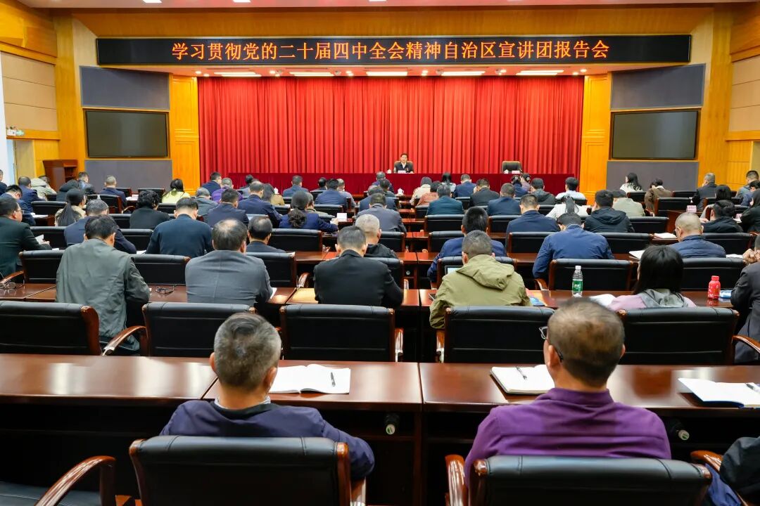 根据自治区党委统一安排,11月19日下午,学习贯彻党的二十届四中全会精神自治区宣讲团报告会在自治区自然资源厅举行。自治区宣讲团成员,自治区住房和城乡建设厅党组书记、厅长杨绿峰作宣讲报告。自治区自然资源厅党组成员、副厅长周涛主持报告会。