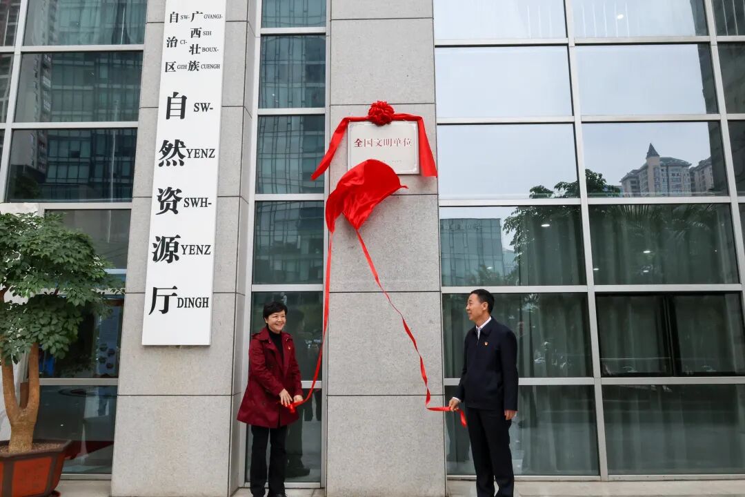 12月3日,广西自然资源遥感院也举行“全国文明单位”授牌仪式。自治区党委区直机关工委副书记邹颖明、二级巡视员邵国芳,自治区自然资源厅二级巡视员杨健出席授牌仪式。