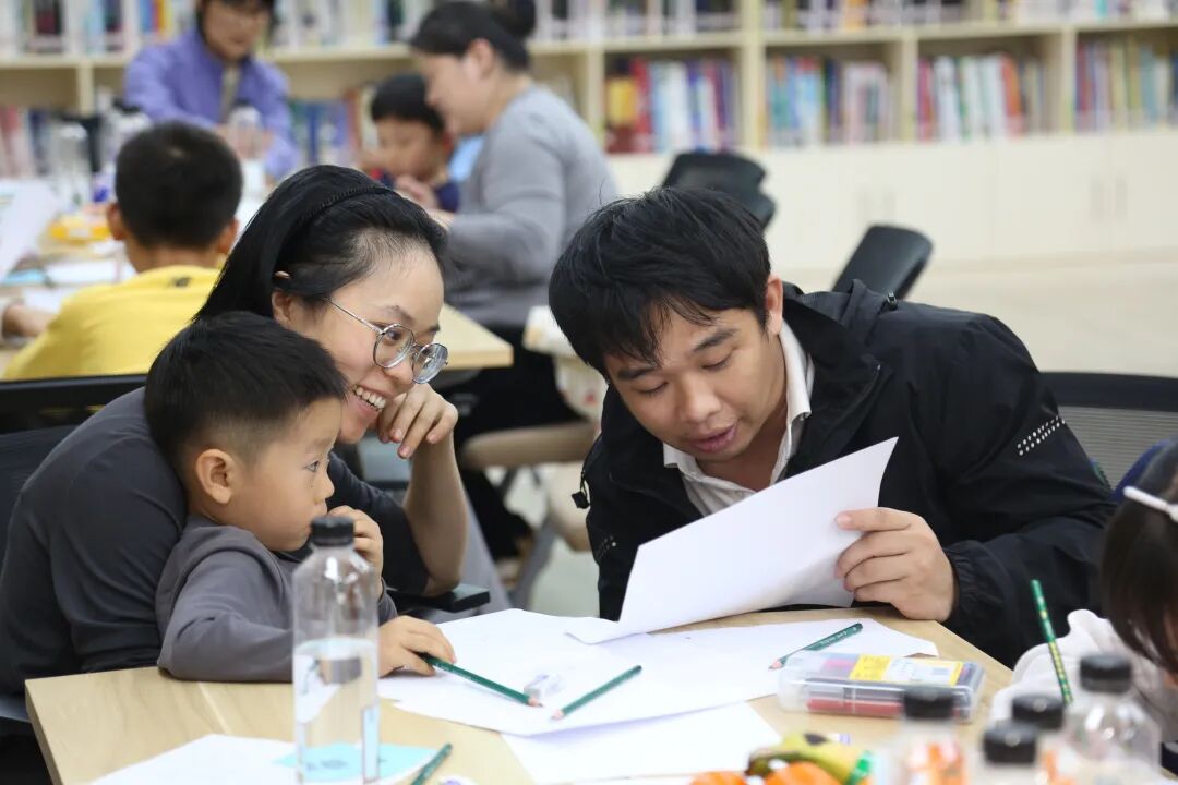 活动设置背对背绘画、面对面分享、共同创作、“爱的能量圈”四大环节,首先由家长和孩子分别以“房子、树、人”为元素,独立绘制心中的“幸福家”,在安静创作中敞开心扉。随后在分享环节,倾听彼此藏在画作背后的真实想法。最后,亲子协作共同绘制“理想中的家”,交流各自内心的期许与向往。