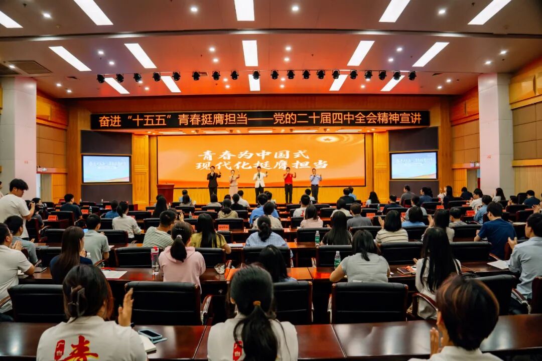 宣讲活动将党的二十届四中全会精神与青年成长实践、岗位履职故事、青春奋斗感悟相结合,推动理论宣讲从“单向灌输”向“双向奔赴”转变,激发大家投身“十五五”、奋进新征程的热情。共青团广西区委、自治区直属机关团工委有关负责同志到场指导。区直机关单位、自治区自然资源厅、广西自然资源职业技术学院青年干部代表及“广自青舟”青年讲师团约150人参加活动。
