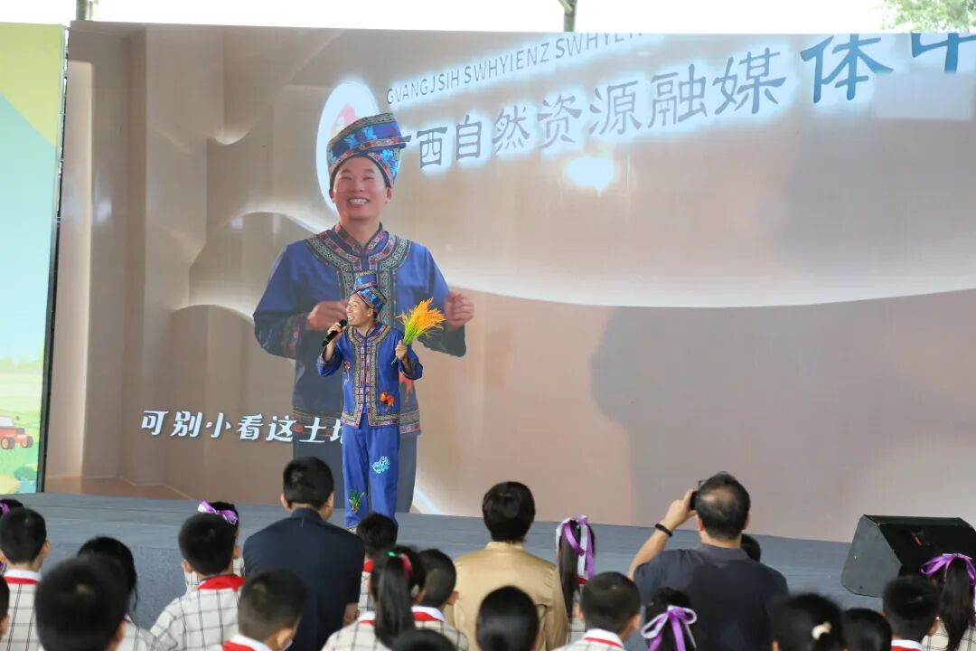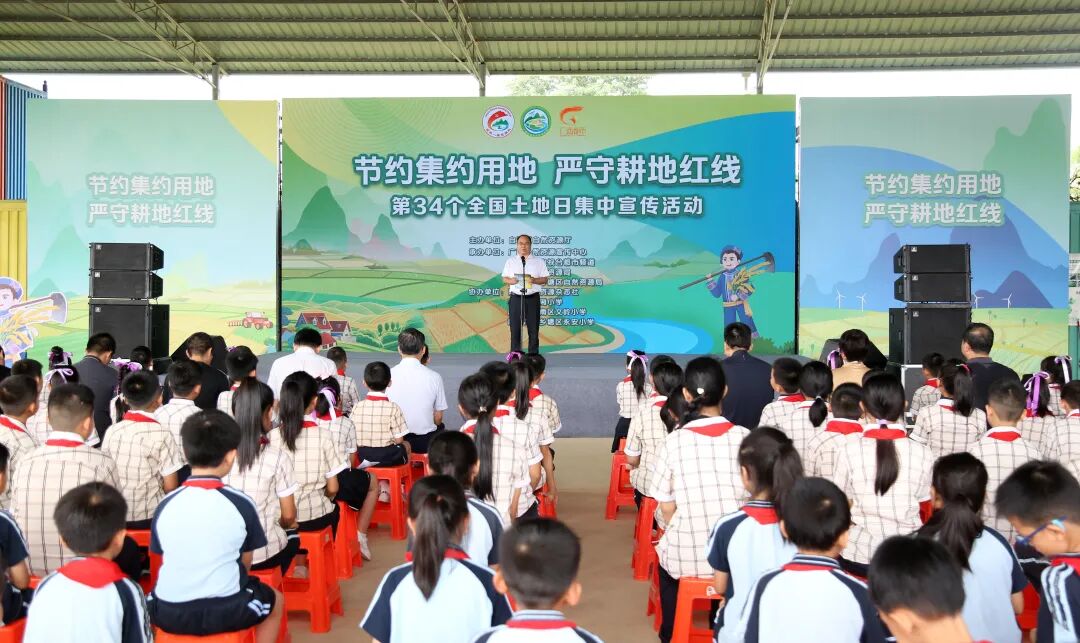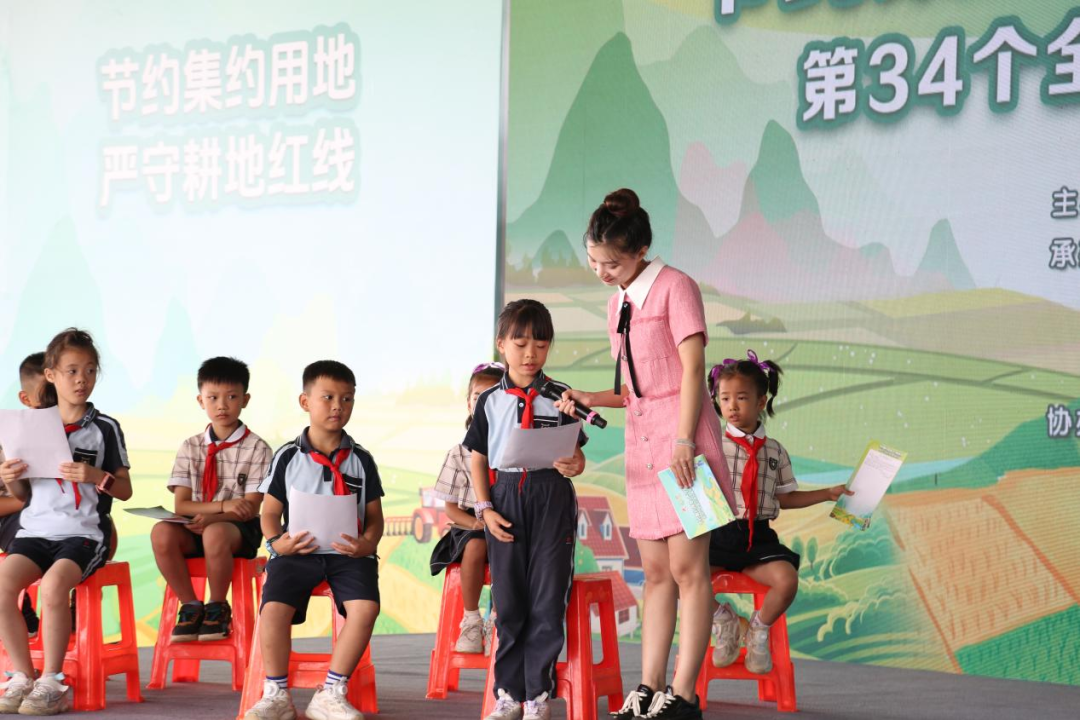 活动现场,主办方通过播放全国土地日活动宣传片、开设“小小田长话土地”情景课堂、小学生朗读“给土地妈妈的一封信”、耕地保护情景剧快问快答、壮语山歌手献唱原创歌曲《耕守谣》、向学生传递丰收盲盒、开展耕地研学活动等形式,将耕地的价值和丰收的意义具象化,大力宣传耕地保护田长制和土地管理政策法规,引导全社会节约集约利用土地资源,不断提高保护耕地、依法依规用地意识。