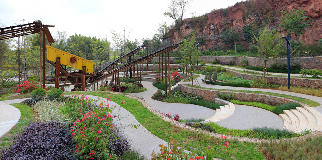 如今,在园内保留的矿区矿业遗址,成为保护和传承矿区文化历史重要载体,增强了游客对保护生态环境的认识和意识。矿坑花园山体修整、植被恢复、水体修复,吸引了白鹭、斑鸠、翠鸟等动物在此繁衍生息,维护了生物多样性,提升了整体的生态环境质量。
