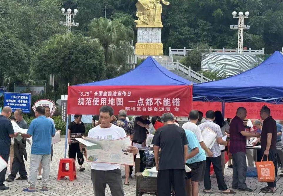 8月29日,桂林市临桂区自然资源局在临桂区金山广场开展2024年测绘法宣传日暨国家版图意识宣传周活动。在活动现场,工作人员通过悬挂宣传横幅、免费发放宣传册、设立科普咨询台等多种形式,向群众解读相关法律法规,解答有关测绘地理信息安全监管、测量标志保护等问题。(作者:梁小芳)