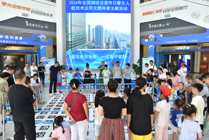 8月29日,百色市自然资源局联合百色市无人机协会在市科技馆开展2024年全国测绘法宣传日暨无人机技术应用主题科普活动。在活动现场,工作人员以科普讲座、有奖竞答等形式,普及测绘基础知识、无人机测绘和国家版图知识等。科普讲座趣味横生,现场观众积极参与答题,气氛热烈。该局还在粤东会馆、市森林广场等地开展多种形式的宣传活动。(作者:吕红连 梁珊)