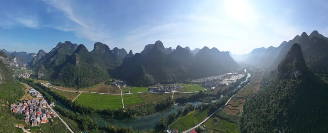 ▲河池市都安瑶族自治县永仁村全域土地综合整治和生态修复后全貌(河池市自然资源局供图)