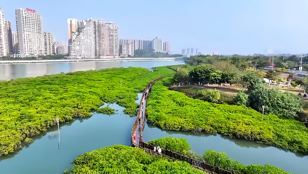 为破难题,防城港市以生态理念为指导,通过修复潜坝后侧和堤前滩涂红树林、建设堤前潜坝和铰链护坡砖、投放堤脚人工渔礁、构建海陆过渡带植被群落等举措,形成了“红树林+海堤+滨海植被”的生态海堤模式,实现了生态与减灾协同增效。2023年9月,由广西海洋局推荐的防城港市西湾红沙环海堤生态化建设案例,入选全球海岸带生态减灾协同增效国际案例。