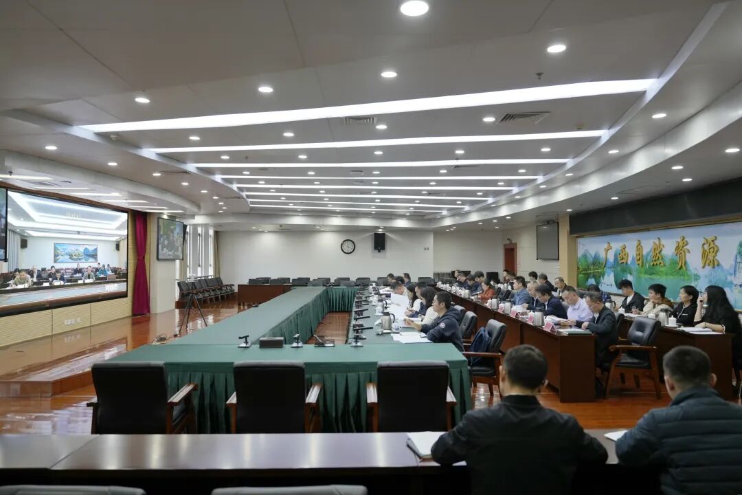 12月18日,全区矿业权整合和“小散乱”企业综合治理专项行动成员单位全体工作会议暨工作调度视频会在南宁召开,深入贯彻中央巡视整改和自治区党委十二届十一次全会部署要求,贯彻落实自治区涉重金属环境安全风险隐患排查整治工作领导小组第七次会议精神,聚焦专项行动主要目标任务再调度、再部署、再推动。自治区自然资源厅党组书记、厅长张文军出席会议并讲话,强调要提高思想认识,坚决杜绝形式主义和政策执行不到位、变相规避整合的行为,依法依规开展各项工作,不获全胜决不收兵。自治区工业和信息化厅副厅长贤海华出席会议,自治区自然资源厅总工程师杨森涛主持会议。